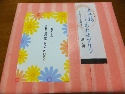 愛媛で暮らしている三女から誕生日のお祝いプリンをプレゼント