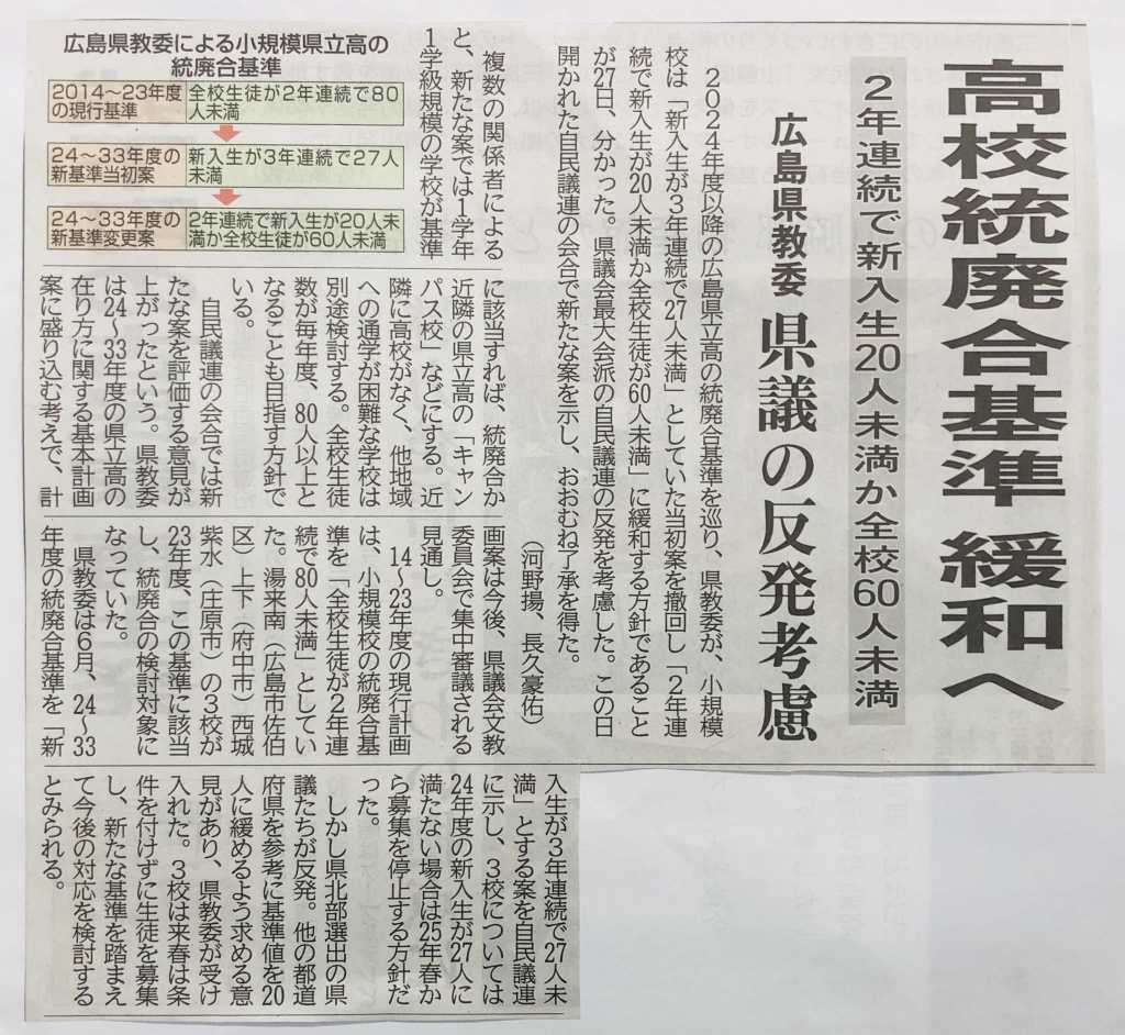 公教育の責務は、第一に、児童・生徒の教育を受ける機会の確保だ。そう考えている。記事は中国新聞です。