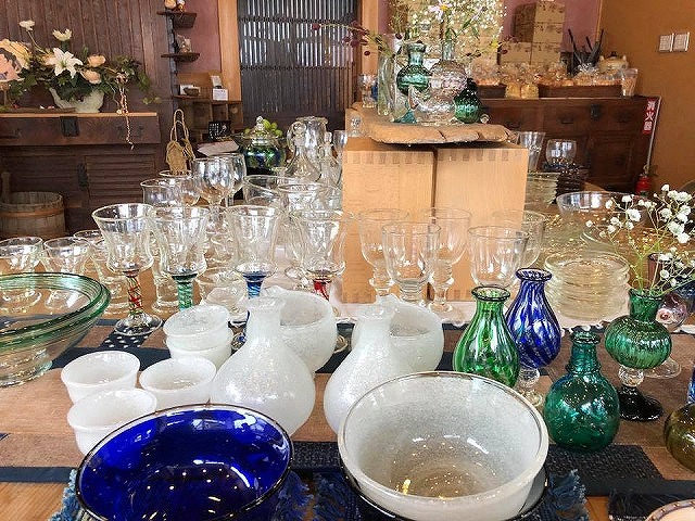 「御殿町センター」近くの「カツマルギャラリー」があまりに綺麗だったので覗いてみると、『吹きガラスの展示販売会』が開催されていました。三宅吹硝子工房の作品です。吹きガラス、味がありますね。26日まで。