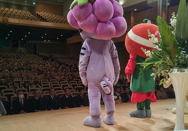 10時から「まなび広場にいみ」で開催された『平成27年度JA阿新園芸生産者大会』に出席しました。園芸品目の売り上げは3月末で約16億円の見込みだそうです。特にブドウは税込10億円を突破、ふれあい市場も3億円になるとのことです。素晴らしいです。また、来賓挨拶の機会をいただき、ありがとうございました。
