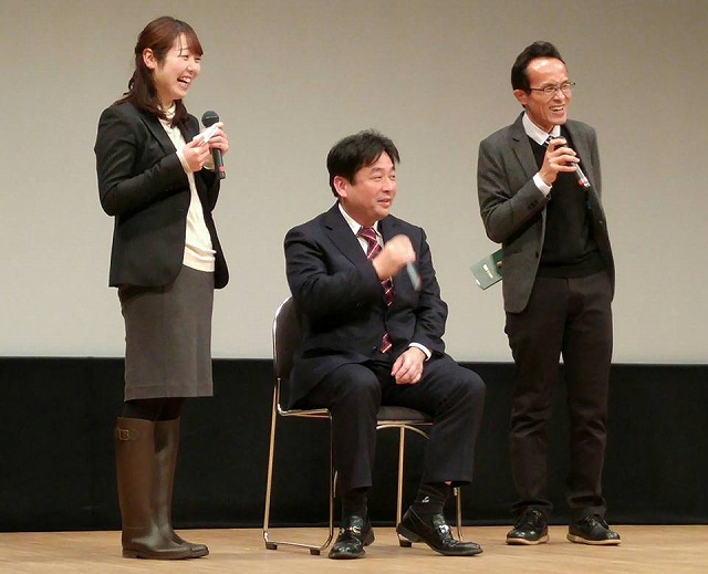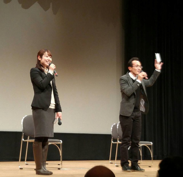 式典の後、『笑味ちゃん天気予報』のイベントです。ビデオ上映の後、キャスター登場!やるな~♪