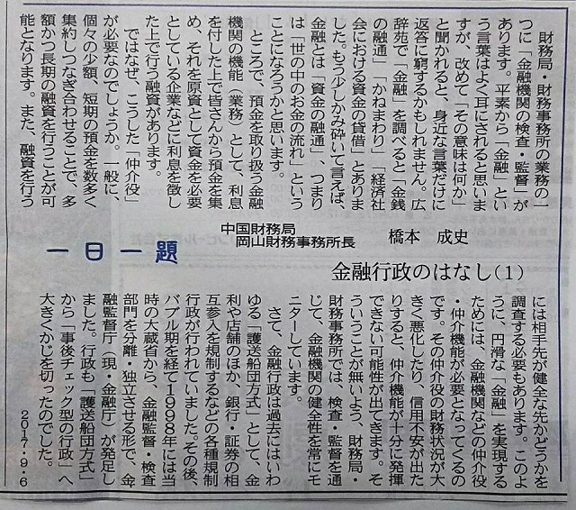 山陽新聞夕刊は、中国財務局岡山財務事務所の橋本所長です。