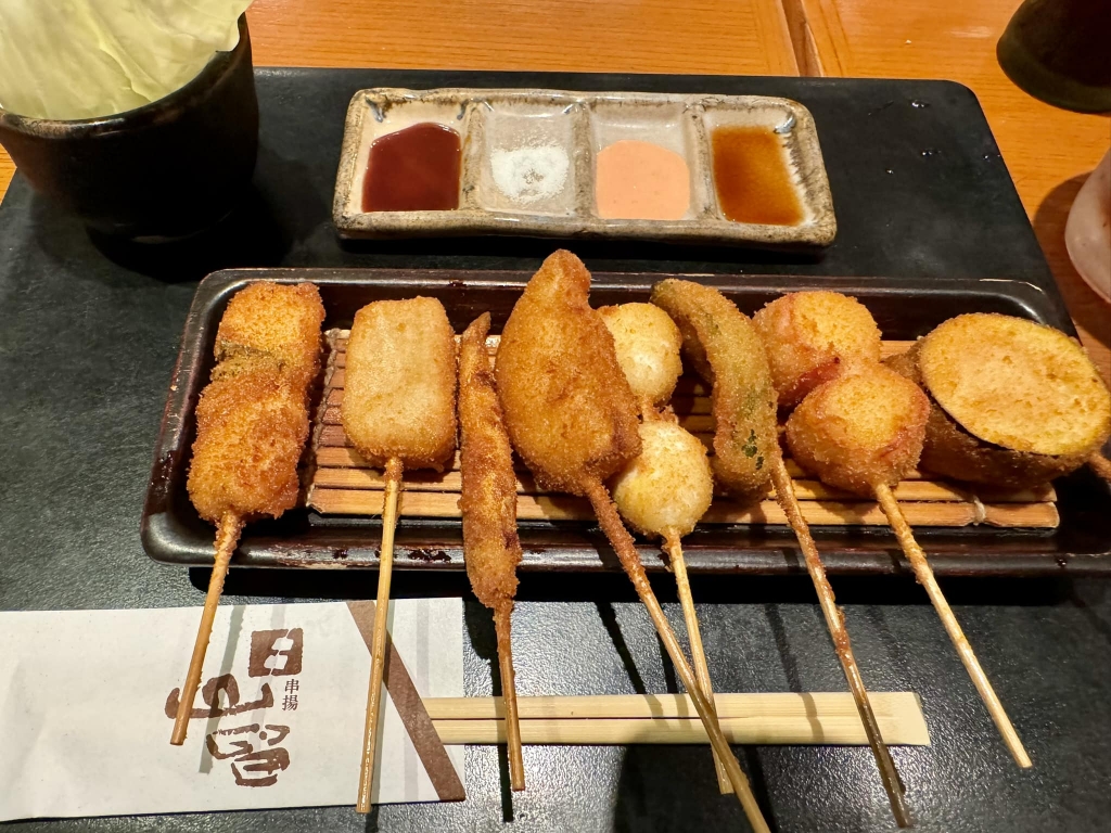 先輩議員にご馳走になった。串揚げはもちろん美味しかったが、お話がご馳走だった。見習うことが多かった。