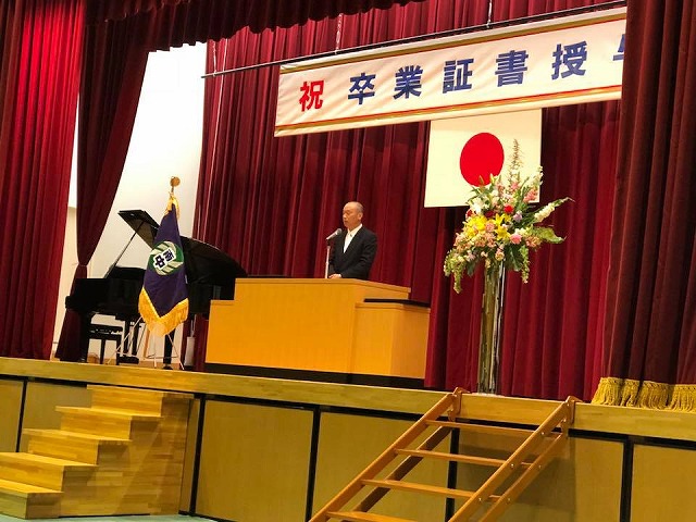 10時から、「新見南中学校体育館」で開催された『市立新見南中学校平成29年度第8回卒業証書授与式』に出席しました。おめでとうございます。