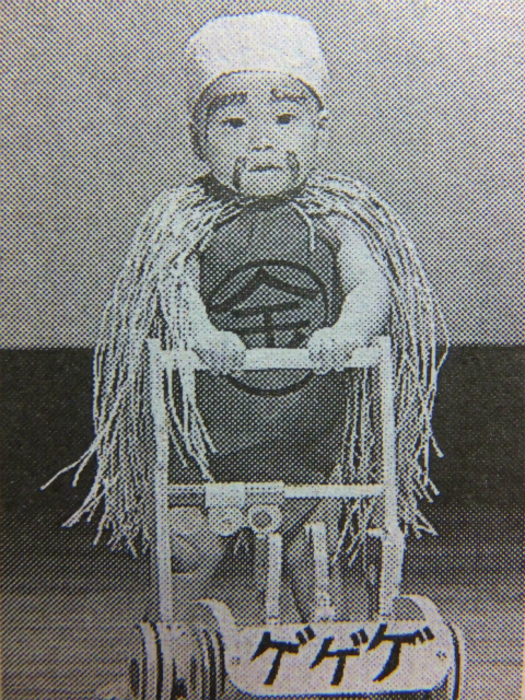 「ゲゲゲの鬼太郎」の町おこしで有名な境港市で、毎年恒例の「妖怪そっくりコンテスト」が行われた。乳母車を押して「子泣き爺」を熱演した1歳4カ月(写真)。優秀賞おめでとう\(^o^)/