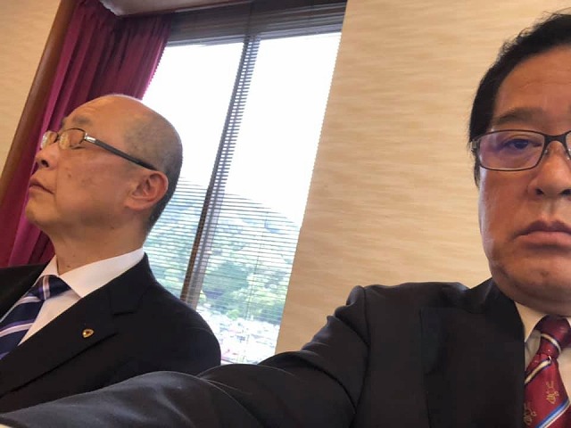 今日の新見商会議所で開催された表彰式の来賓席、私の右側は悟りの境地の大森副市長、左側は「わしは2.5㎏痩せたで」の仲田議長でした。余談ごとですが。