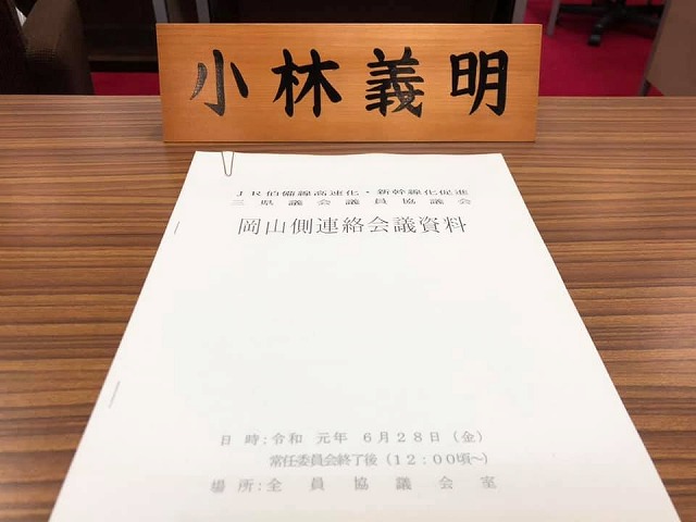 12時から、『JR伯備線高速化・新幹線化促進三県議会議員協議会・岡山側連絡会(蓮岡靖之会長)総会』に出席しました。役員改選で、会計監事にご推挙されました。総会行事の後、執行部から「中国・四国横断新幹線等について」説明がありました。