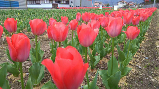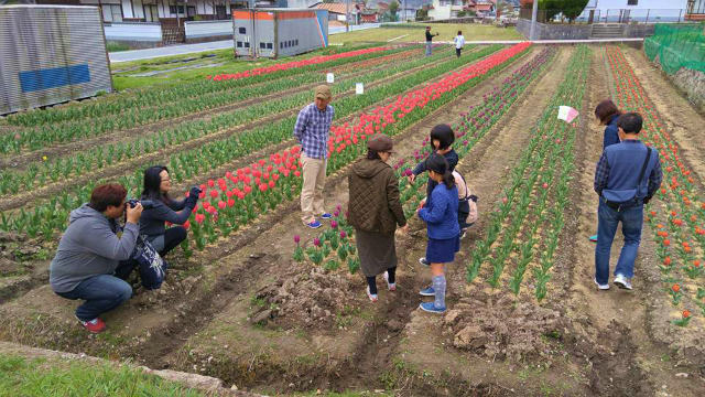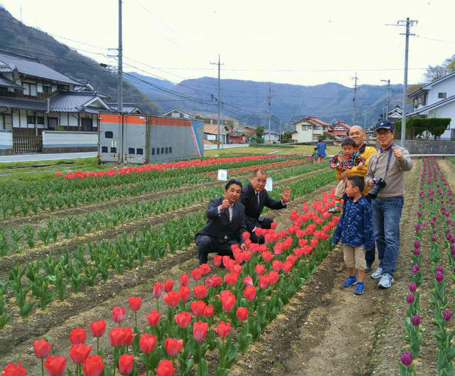 続いて、10時から「唐松市民センター」周辺で開催された『唐松チューリップまつり』に出席しました。多くの皆様で賑わっていました。1000円で20本のチューリップを摘んで帰れます。「いいね!」。