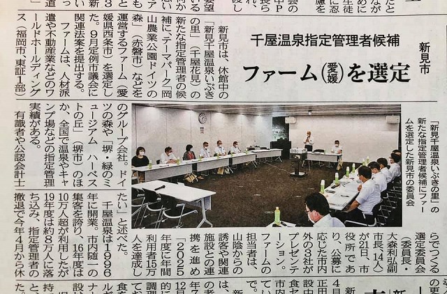 千屋温泉の新しい指定管理者が決まったと山陽新聞が報じている。