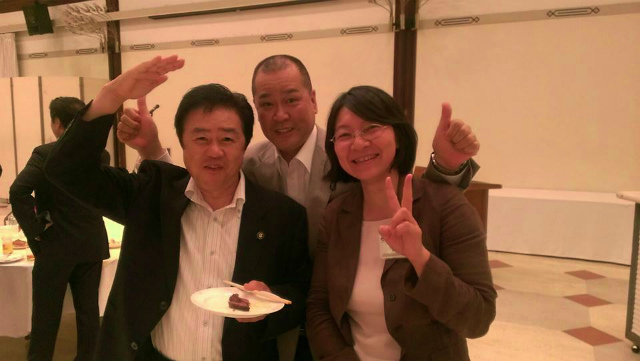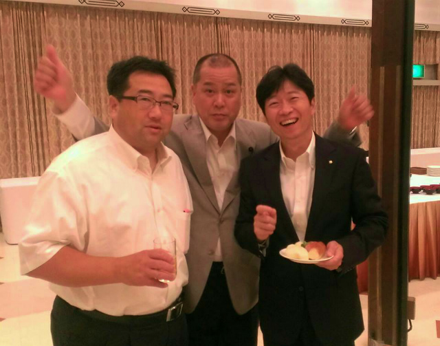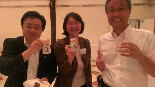 新見市のPRをと、地酒の三光を持ってくださいました。上田県議も加わっていただいてます。