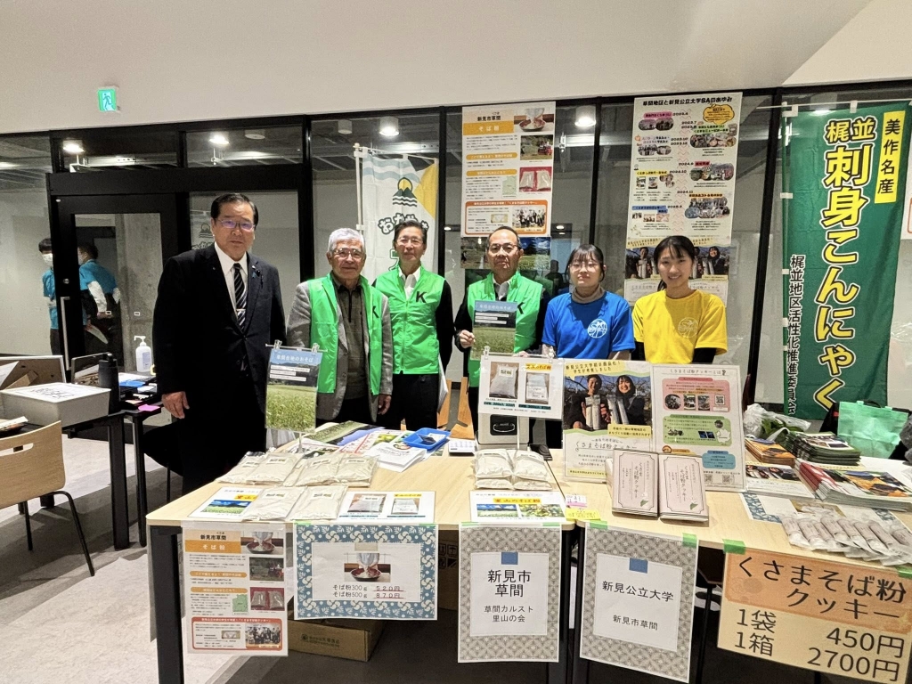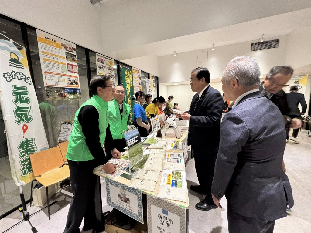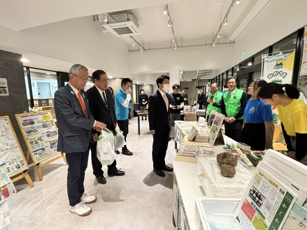 県庁食堂で、今日限りですが、「ミニマルシェ」が開催されていました。伊原木知事も立ち寄ってくださいました。それから、知事と元気集落の関係の皆様、大学生との試食とトーク。ありがとうございます。