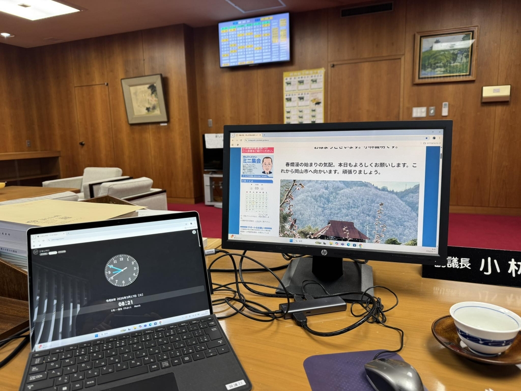 県議会棟に入りました。副議長室です。9時までに、「協議」等4件。とりあえず、小休止。