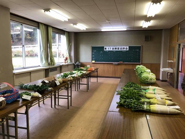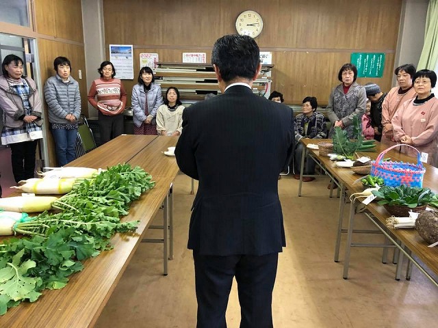 「新砥公民館」で開催された『第17回野菜品評会』に出席しました。新砥婦人会の伝統行事です。今年も立派な「野菜」が並びました。一言ご挨拶をさせて頂きました。