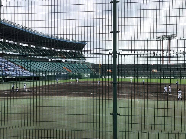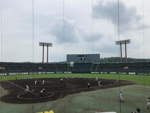 「倉敷マスカット球場」に来ています。岡山共生高校野球部の試合です。今日は泣かないと決めています。