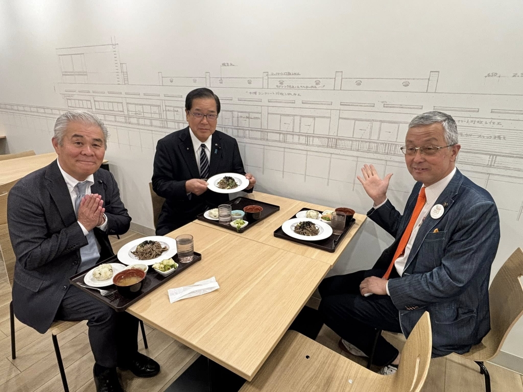 今日から19日まで、提供される「元気集落特産品の特別ランチ」を食しました。中山間振興に注力する、上田県議、山本県議と。
