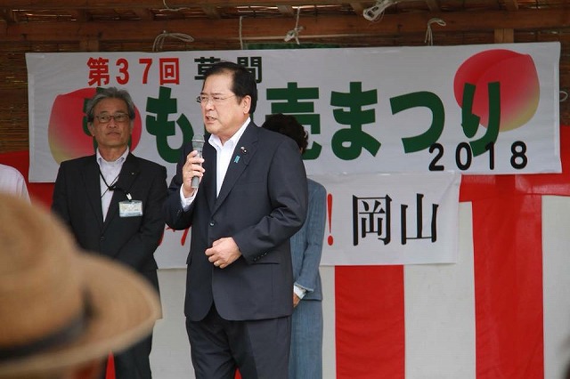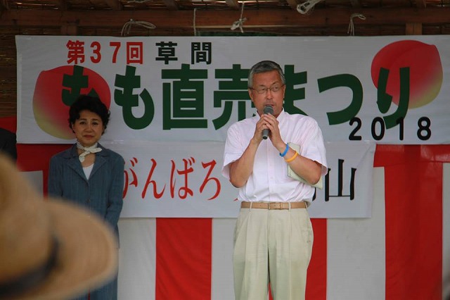 8時45分から、「カルスト山荘グラウンド」で開催された『第37回草間もも直売まつり』に出席しました。今なお、断水が続く草間地区です。困難な中、地域の皆様が頑張って開催されました。しっかり応援していきたいと思います。