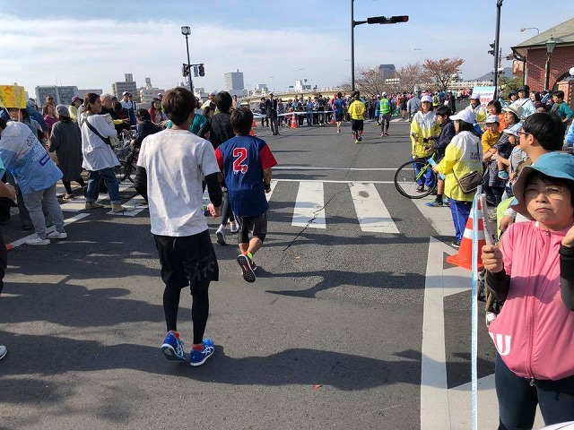 『加藤勝信先生政経セミナー』会場のホテルを出ると、外は『岡山マラソン』~♬。頑張って!