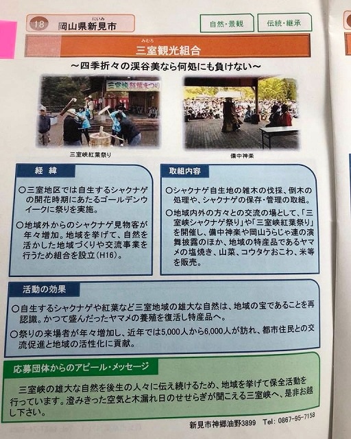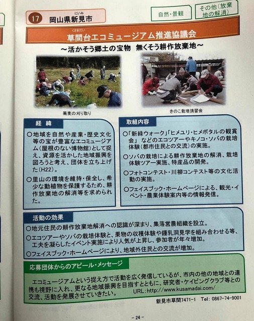 私の地元新見市関係では、P24に「草間台ミュージアム推進協議会」、P25に「三室観光組合」の取り組みが掲載されている。
