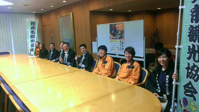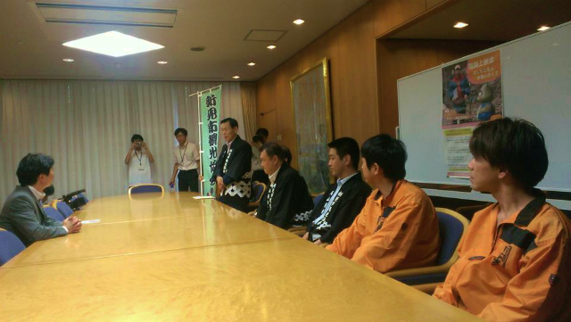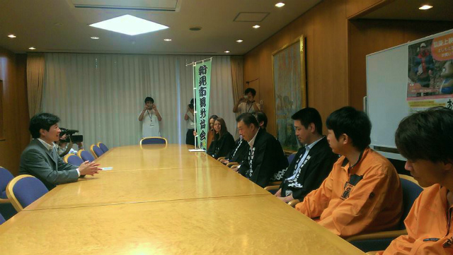 12時40分ごろから、7月4日㈰に「まなび広場にいみ」で上映される『にいみ的おとぎばなし』関係の皆様をご案内。足羽副知事と記念写真。ありがとうございました。いい人です。