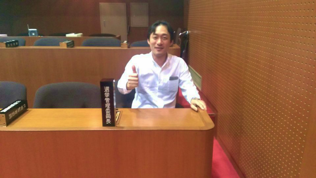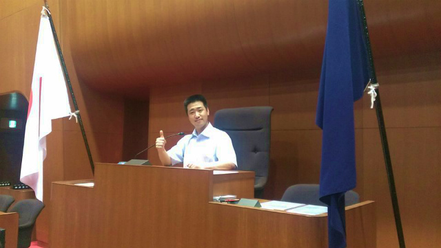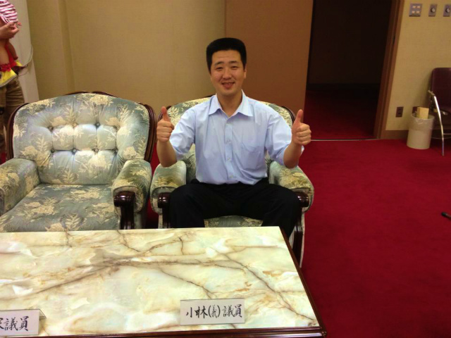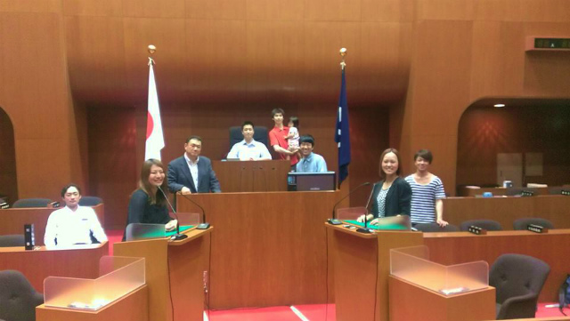 県議会議事堂視察。この位置取り、さすがに映画経験がいきております・・・