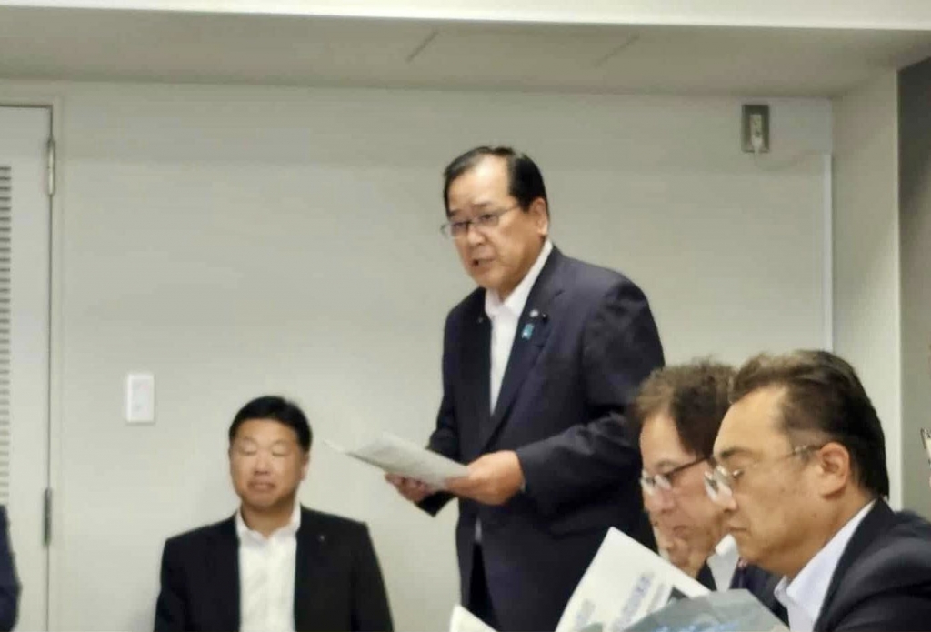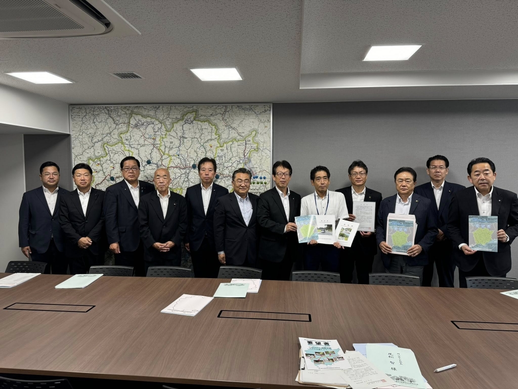 10時30分から、県土木部長室を訪問して、「西部総合開発基幹道建設促進期成会」「高梁旭線道路整備促進期成会」及び「中部高原地域整備促進期成会」の3期成会合同での対県要望に同行しました。期成会顧問として、過疎地域での道路整備評価における通行車両台数基準の見直しを求めました。