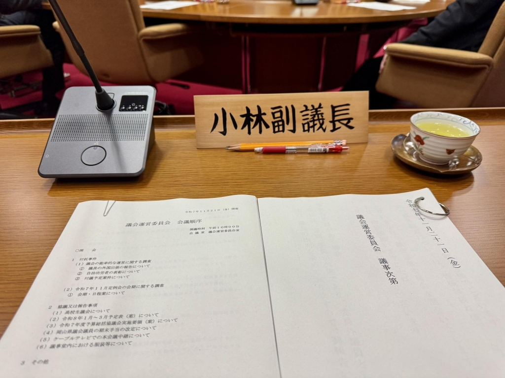 急いで県議会棟へ移動して、10時から開催された『議会運営委員会』に出席しました。これから『令和7年度全国私学経営者協議会研修会』に戻ります。
