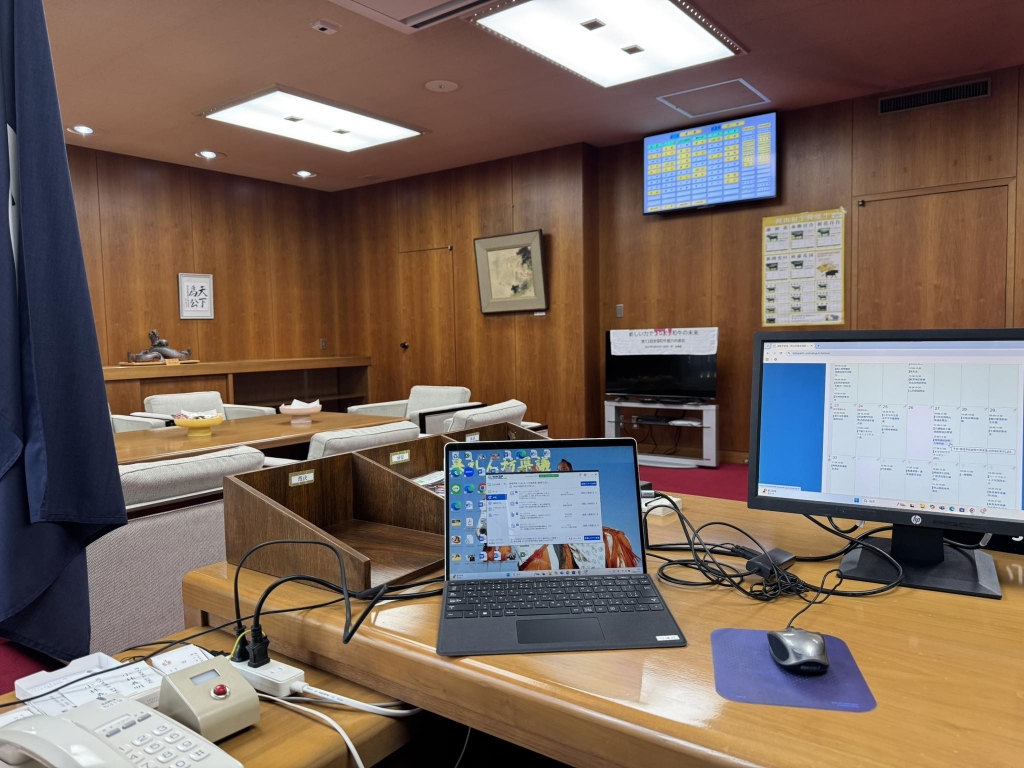 8時50分頃、県議会棟へ入りました。9時から、「協議」2件。