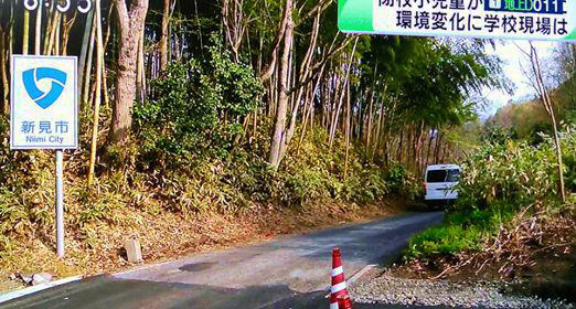 高梁市の西山小学校の閉校にともない、新見市の野馳小学校へ越境通学する児童を運ぶスクールバスの通る県道です。4月に合わせて改良されました。改良ヵ所から野馳小学校へ向けて、まだ課題がありそうです。