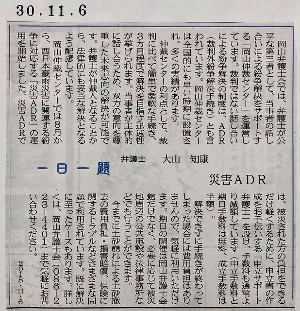 県議会棟に入りました。山陽新聞夕刊です。お友達の連載、残り少なくなりました。