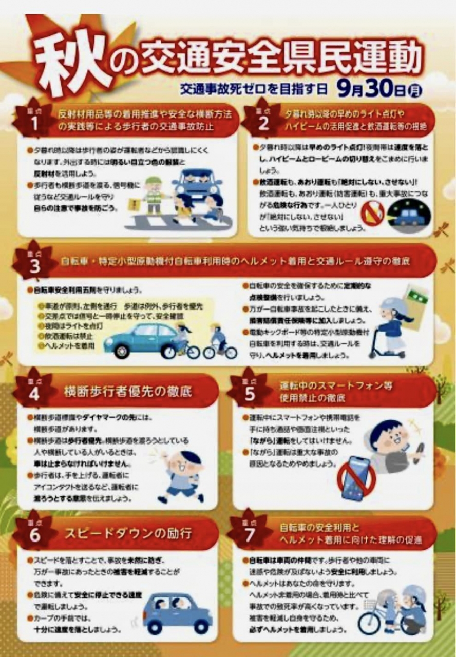 「秋の交通安全県民運動」が始まっています。