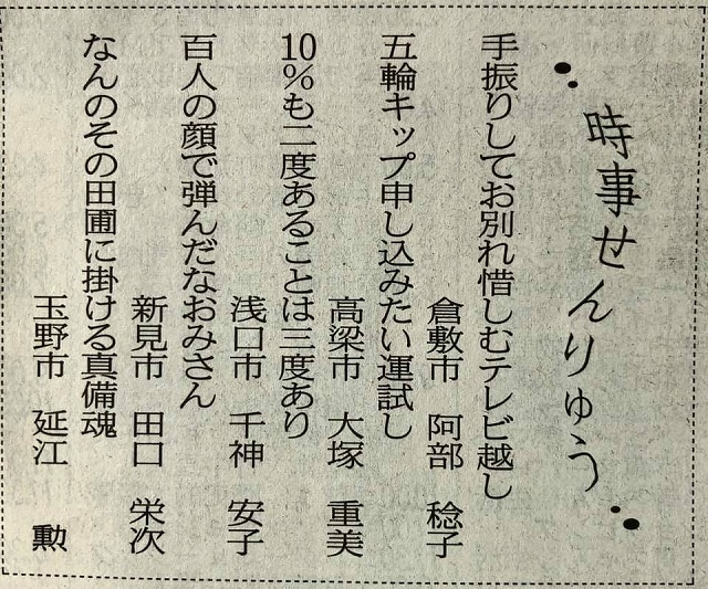 山陽新聞創刊140周年、おめでとうございます。同級生田口栄次くん、134回目の「時事せんりゅう」です。おめでとうございます。岡山共生高校eスポーツ、全国大会準優勝おめでとうございます。