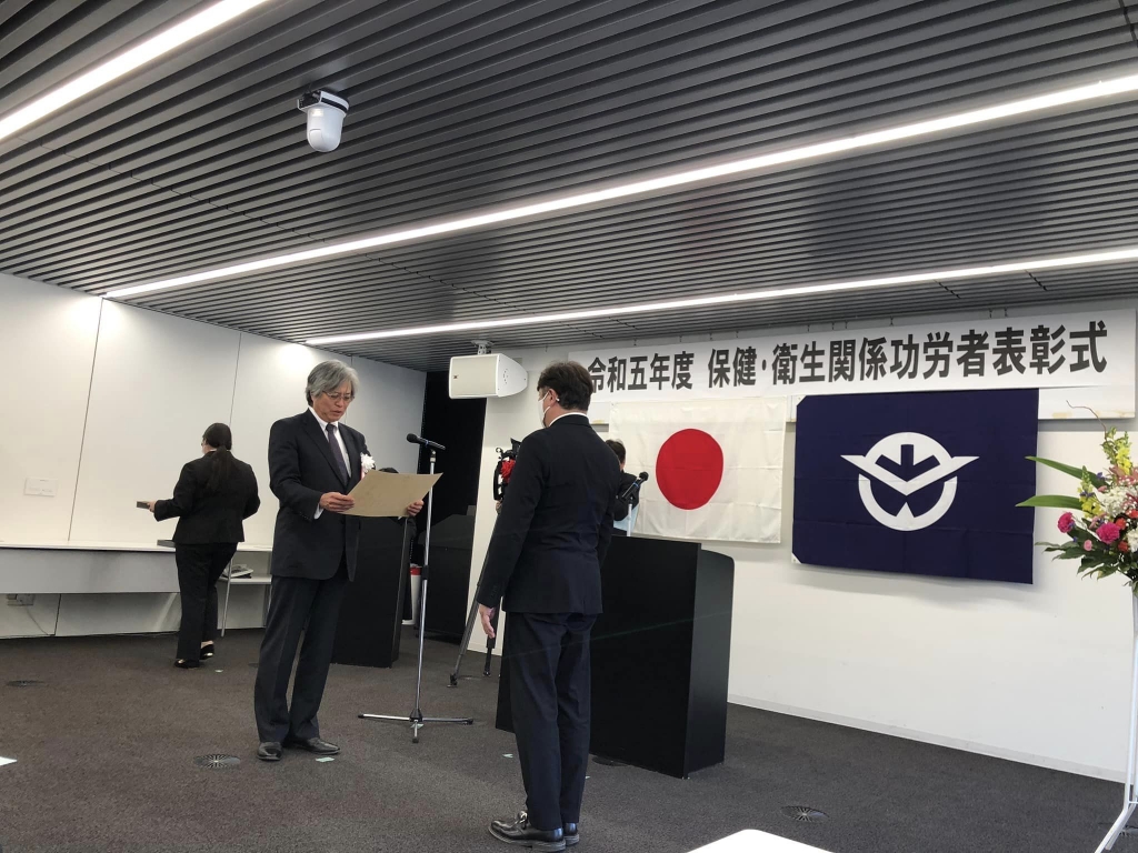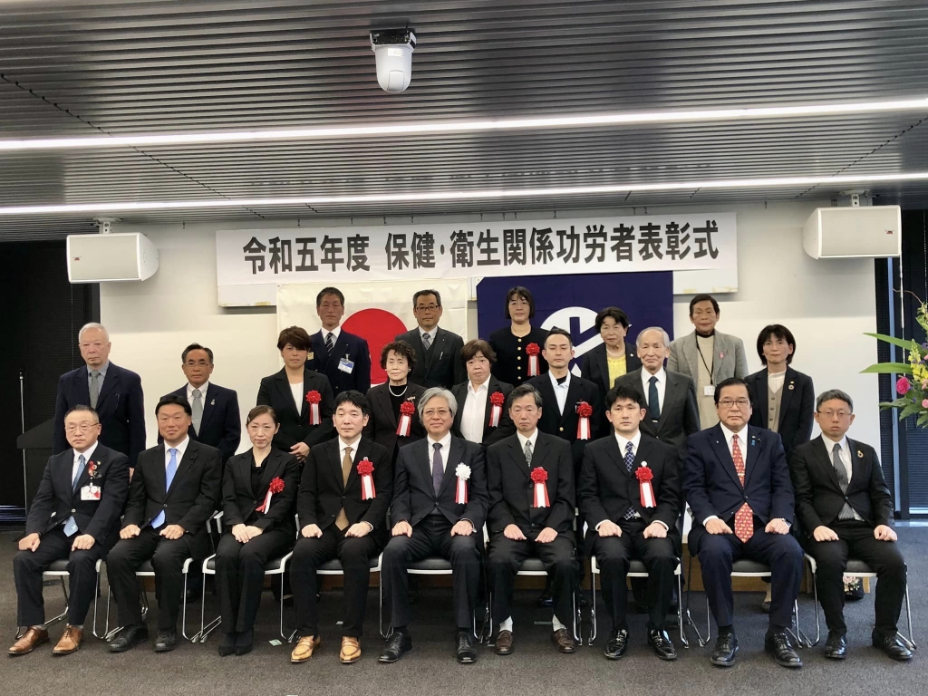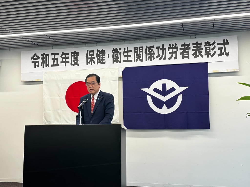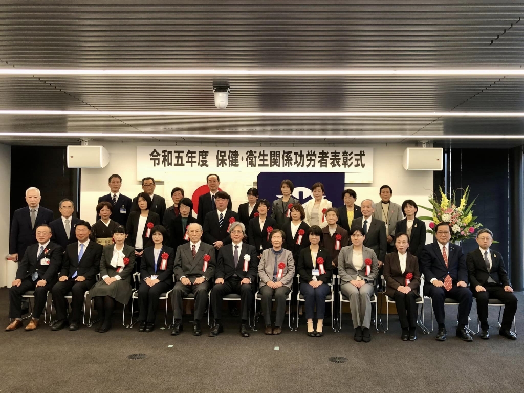 続いて開催された「令和5年度保健・衛生関係功労者表彰式」に出席しました。多年にわたり保健衛生事業の発展に尽くされ、そのご功績が特に顕著であった96名の皆様です。おめでとうございます。