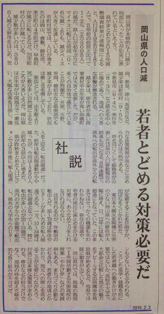 今日は新見市内で活動しましたが、日没で終了。偶然お会いした大先輩からのアドバイス、ありがたく思いました。「鬼は外、福は内」の日の山陽新聞社説です。本当は、このことから目をそらしたら駄目ですよね。