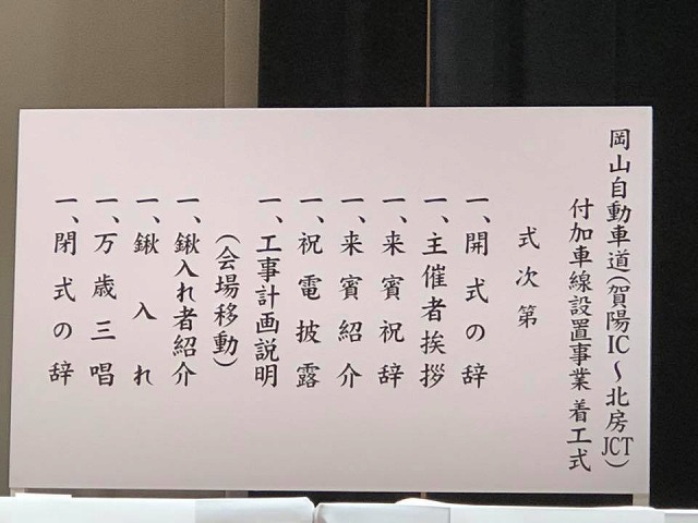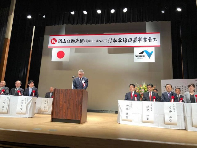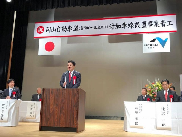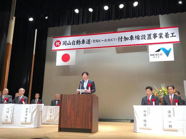 10時から、「高梁市有漢公民館生涯学習センター」で開催された『岡山自動車道(賀陽IC~北房JCT)付加車線設置事業着工式』に出席しました。伊原木知事、加藤勝信大臣はじめ、多くの関係の皆様がご出席でありました。