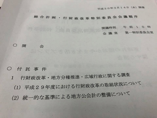 10時から、県議会「総合計画・行財政改革特別委員会」に出席ました。