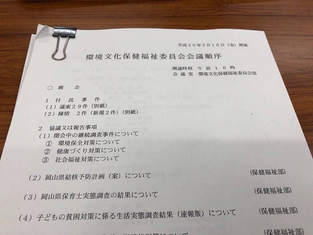 それから、福島副委員長と共に「環境文化保健福祉委員長レク」。16日開会の「環境文化保健福祉委員会」について。