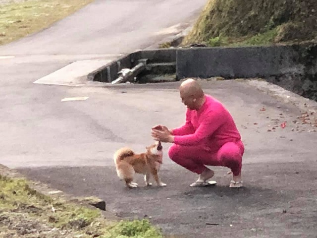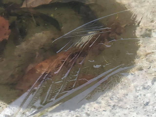 冷え込みました。氷がはっています。寒い寒い「朝のお散歩」です。ピンクのおっちゃん、元気だなぁ。ありがとうございます。