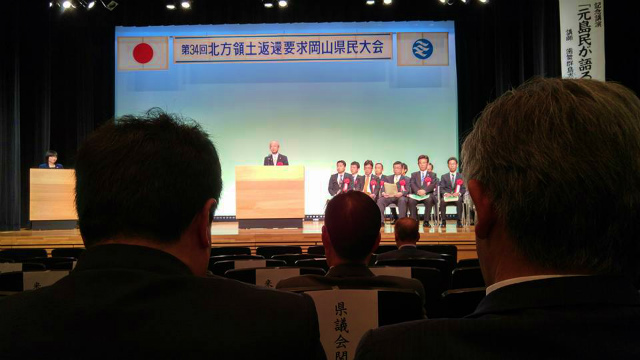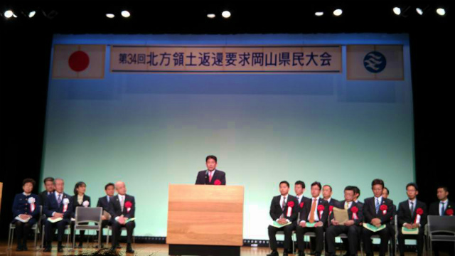 13時30分から「さん太ホール」で開催された『第34回北方領土返還要求岡山県民大会』に出席しました。我が国固有の領土である北方四島(択捉島、国後島、色丹島、歯舞群島)の早期一括返還の実現に向けて、県民をあげて返還運動を粘り強く展開することを改めて決意しました。