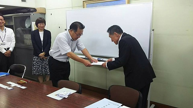 続いて、総務部長室に亀森部長を訪ねました。大人対応ですね。お二人とも腰が低いこと。和やかに始まりました。