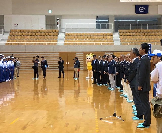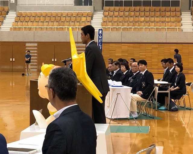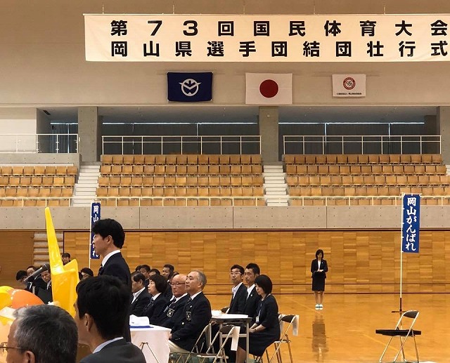16時から、「ジップアリーナ岡山」で開会された『第73回国民体育大会福井しあわせ元気国体岡山県選手団結団壮行式』に出席しました。頑張れ!岡山県選手団。