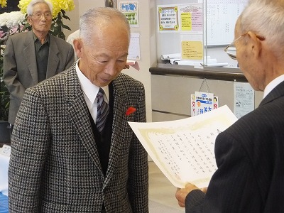 菊花展表彰を受ける西嶋翁
