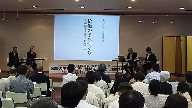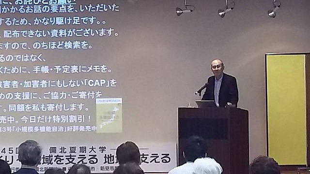 13時30分から「新見商工会館」で開催された『第45回記念備北夏期大学「協働のまちづくり~地域を支える、地域で支える~」』に出席しました。