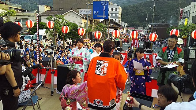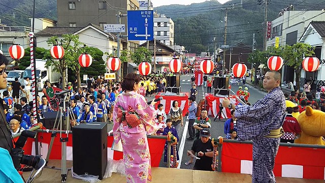 18時30分から『新見ふるさと祭り』の開会セレモニーに出席しました。県会議員なって初めてステージに上げて頂きました。踊り連40数連、1600人以上の参加と聞きました。素晴らしい。