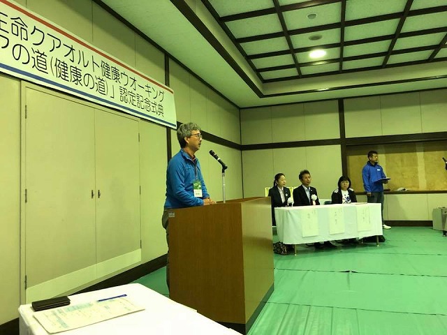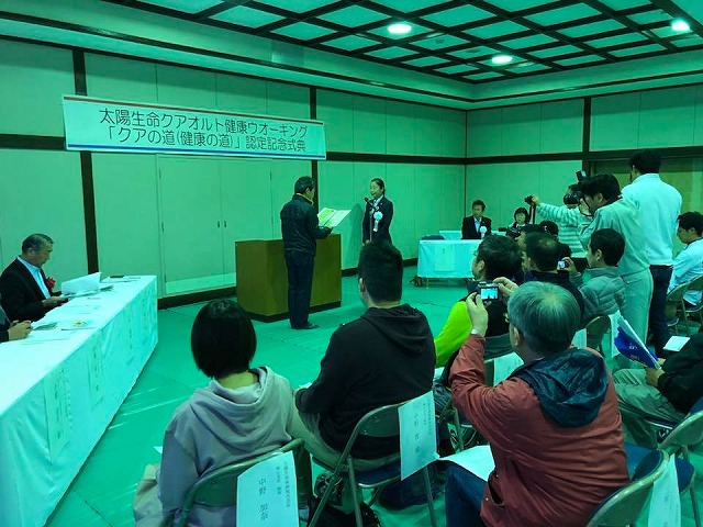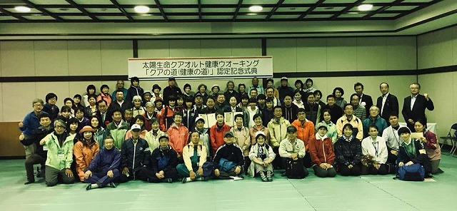 続いて、9時から「新見市民体育館」で開催された『クワオルト健康ウオーキングイベント』に出席しました。一言ご挨拶の機会を頂きました。また、テープカットもさせて頂きました。この試みが多くの皆様の理解と共感を頂いて成功しますように。太陽生命の物心両面にわたるご協力に感謝しつつ。併せて、「井戸を掘った人を大切にするのが日本の精神文化」と話させて頂きました。