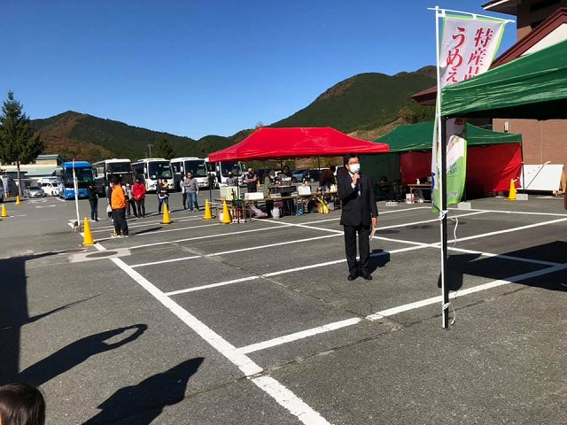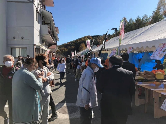 続いて、「千屋温泉広場」で開催された『千屋野の里うめぇもん市』に参加しました。ご盛会おめでとうございます。加藤勝信代議士も参加して下さいました。