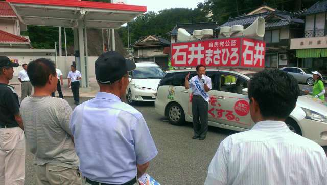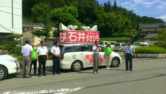 それから大急ぎで、新見市へ帰りました。13時10分から、「石井まさひろ遊説隊in新見」に同行。15時まで、新見市南部を走りました。