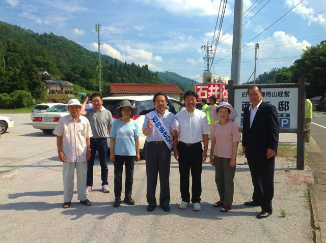 林、津島、山本、坂東、岩田各市議会議員の皆様にご同行いただきました。また、哲多では羽場市議会議員も駆けつけてくださいました。なお、高梁選対につないだのですが、加藤勝信代議士が合流されました。