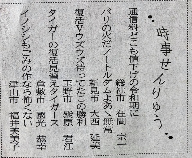 同級生の大西延美さんは、山陽新聞「時事せんりゅう」です。上手い!巴里の灯もレ・ミゼラブルも。