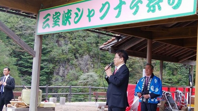 10時から、新見市神郷三室の「しゃくなげ展望台」で開催された『2019年三室峡しゃくなげまつり』の開会式に出席しました。遠路、小野田きみ参議院議員が駆け付けて下さいました。ありがとうございました。しゃくなげの花も満開でした。午後からは、加藤勝信衆議院議員も駆け付けて下さいました。ありがとうございました。