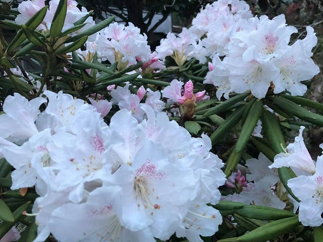 いつもの朝です。ありがたいことです。満開のシャクナゲといつもの小林ふくです。本日もよろしくお願いします。頑張りましょう。
